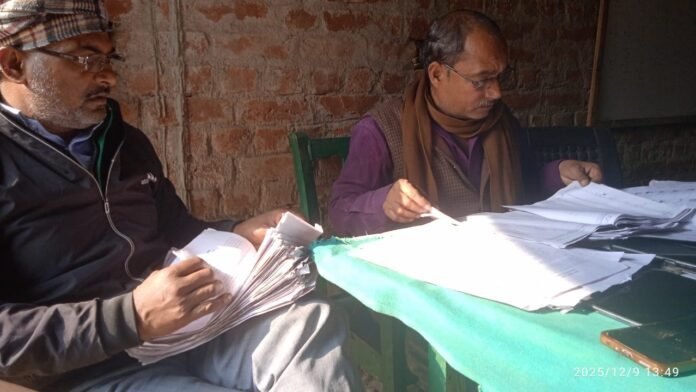 देवरिया। भटनी विकास खंड के प्राथमिक विद्यालय अमवा में आज एसआईआर फॉर्म भरने का कार्य संपन्न हुआ। फॉर्म भरने की प्रक्रिया के दौरान बीएलओ राजेश्वर तिवारी ने आवश्यक अभिलेखों का सत्यापन करते हुए फॉर्म भरवाने की जिम्मेदारी निभाई। उनके साथ सहयोगी मनु भी उपस्थित रहे और पूरे कार्य में सहयोग प्रदान किया।