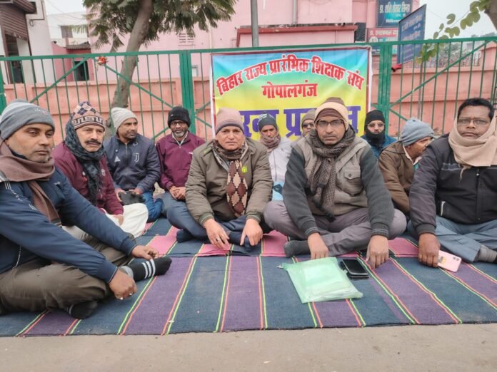 गोपालगंज: बिहार राज्य प्रारंभिक शिक्षक संघ के राज्यव्यापी आह्वान पर मंगलवार को नियोजित शिक्षकों ने वर्षों से लंबित प्रोन्नति और स्थानांतरण की मांग को लेकर शहर के आंबेडकर चौक पर धरना-प्रदर्शन किया। धरने की अध्यक्षता संघ के जिला अध्यक्ष रतिकान्त साह ने की। कड़ाके की ठंड के बावजूद बड़ी संख्या में शिक्षक एकजुट होकर शिक्षा विभाग की नीतियों के विरोध में नारेबाजी करते नजर आए।