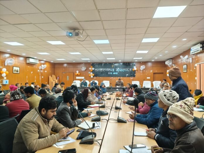 समाहरणालय परिसर में मंगलवार को जिलास्तरीय सतर्कता एवं अनुश्रवण समिति की बैठक जिला पदाधिकारी पवन कुमार सिन्हा की अध्यक्षता में सम्पन्न हुई। बैठक में पुलिस अधीक्षक अवधेश दीक्षित, उप विकास आयुक्त निशांत कुमार विवेक एवं अपर समाहर्त्ता राजेश्वरी पाण्डेय सहित संबंधित अधिकारी उपस्थित रहे।