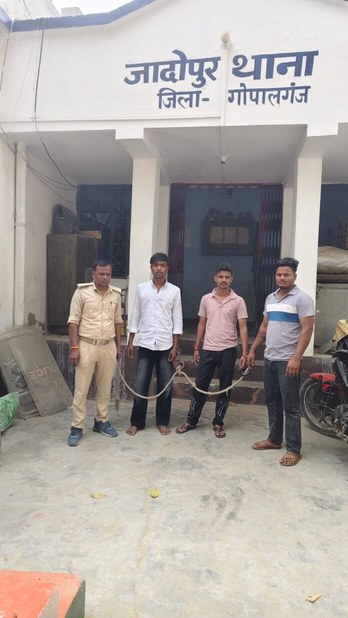 गोपालगंज। जिले के जादोपुर थाना क्षेत्र में पुलिस ने कार्रवाई करते हुए देसी कट्टा और कारतूस के साथ तीन युवकों को गिरफ्तार किया है। पुलिस के अनुसार तीनों आरोपी किसी वारदात को अंजाम देने की साजिश रच रहे थे। गिरफ्तार आरोपितों से पूछताछ के बाद उन्हें न्यायालय में पेश कर दिया गया।